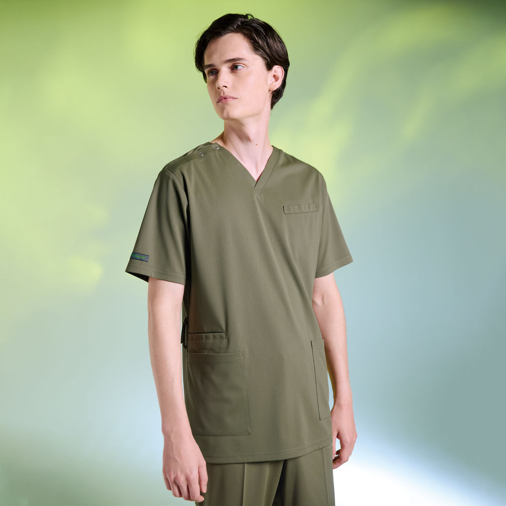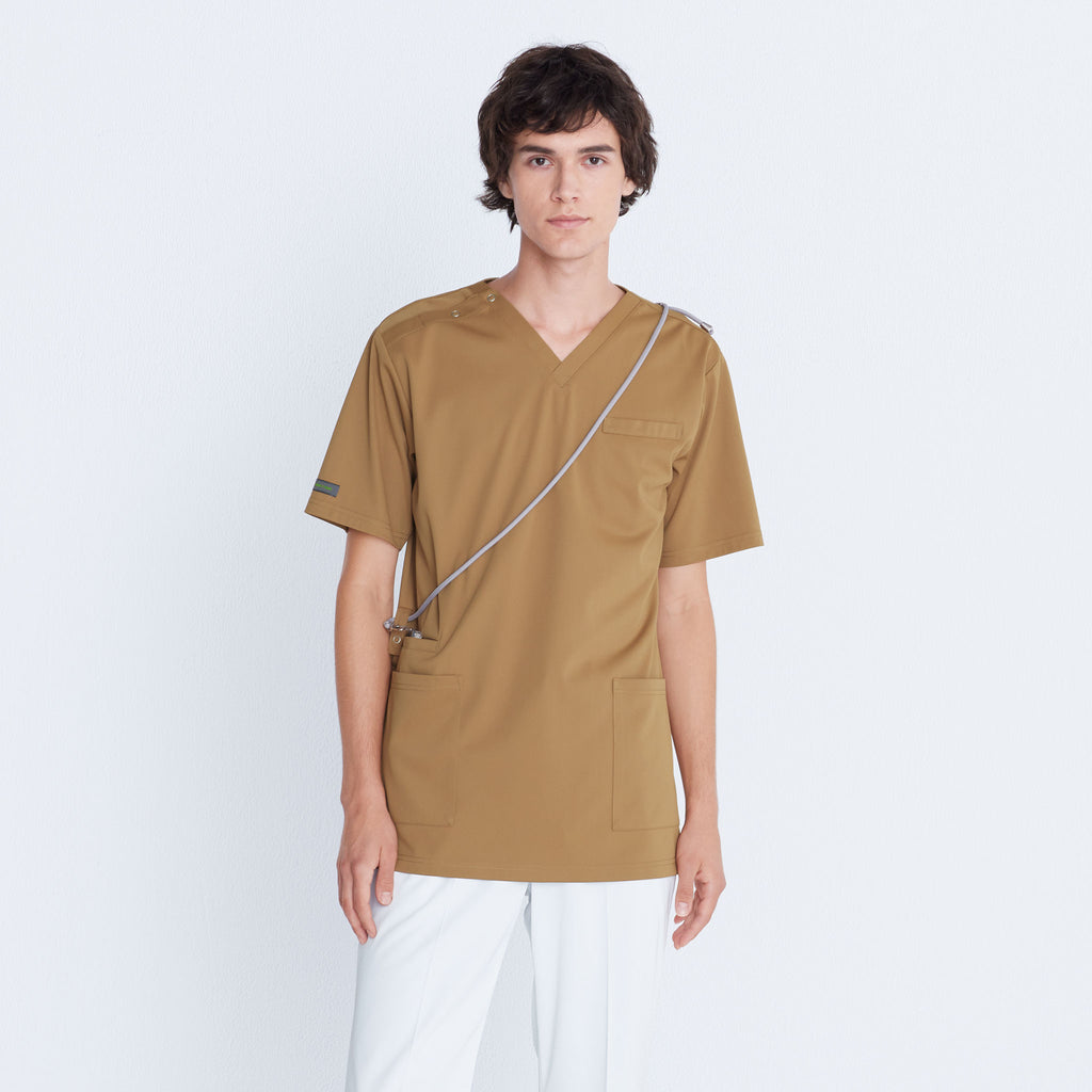 【商品特徴】シンプルながらプロファンクション機能を搭載し、ハイスペックなニット素材を使用した高機能スクラブ。高級感があり心地よいナチュラルカラーと動きやすく涼しい機能性が共存しています。ダブルループとスマートフォン用ポケットを右脇に搭載しています。●男性用●スマートフォン用ポケット右腰上側●右脇ダブルループ(特許登録済、意匠登録済)